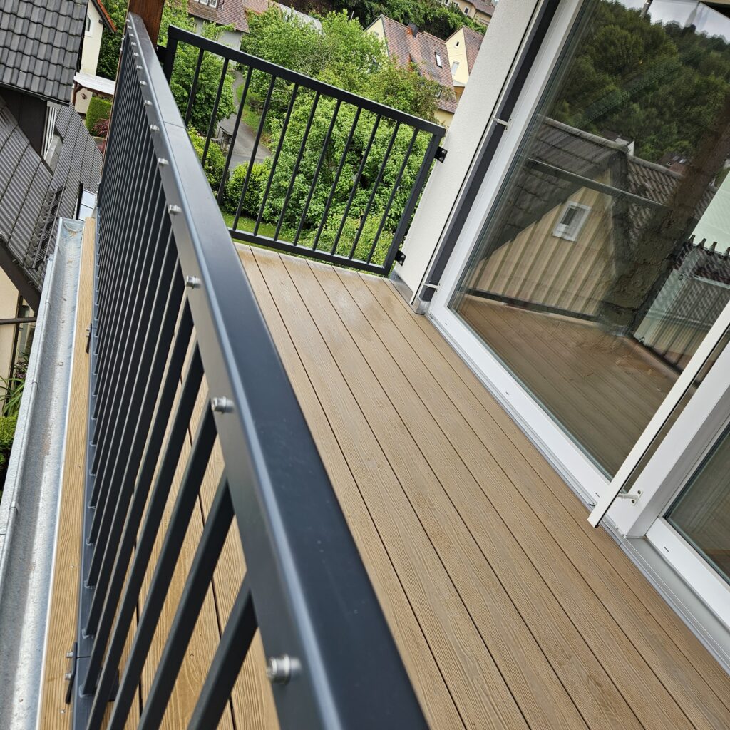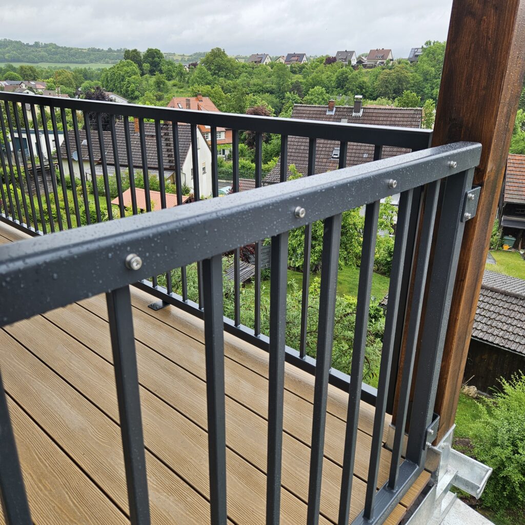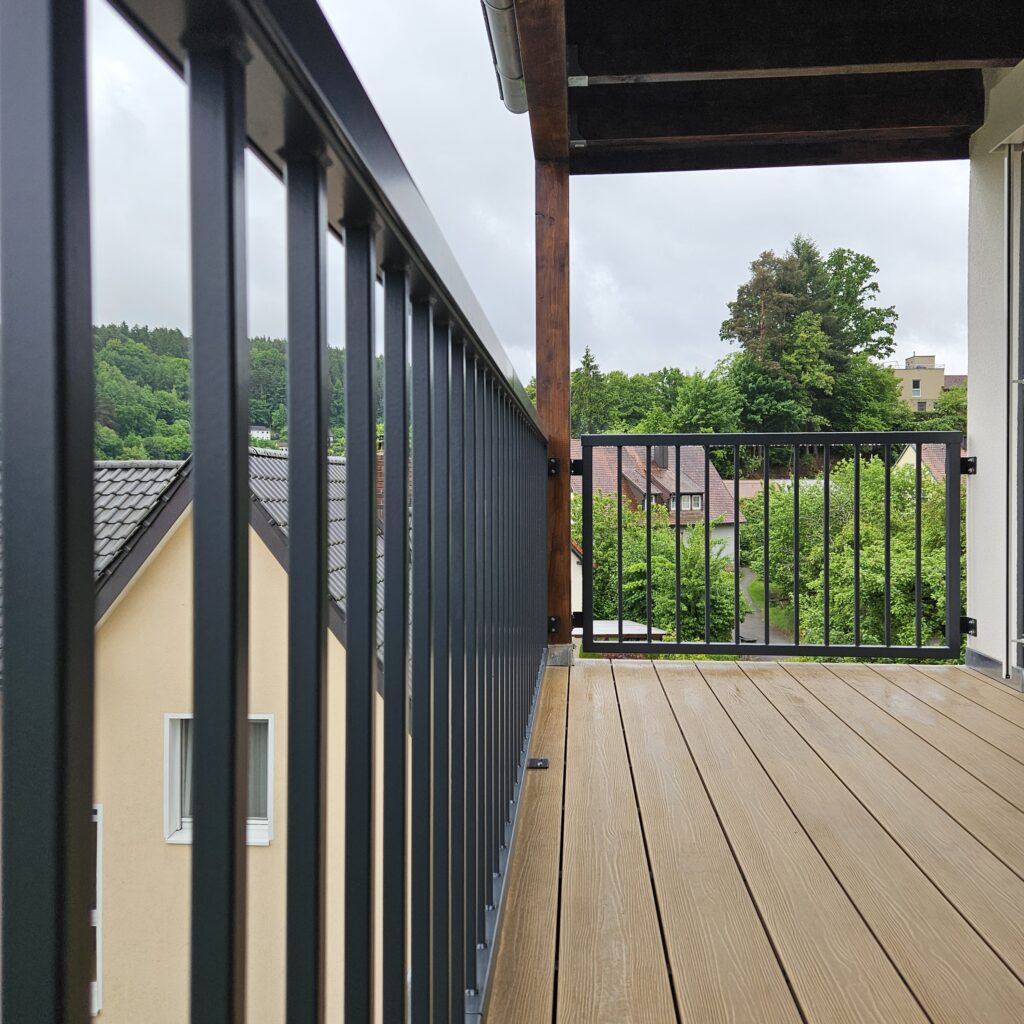 Vom Balkon aus wirkt es dezent – von außen erzeugen die sichtbaren Schrauben im gleichmäßigem Abstand eine besondere Struktur.